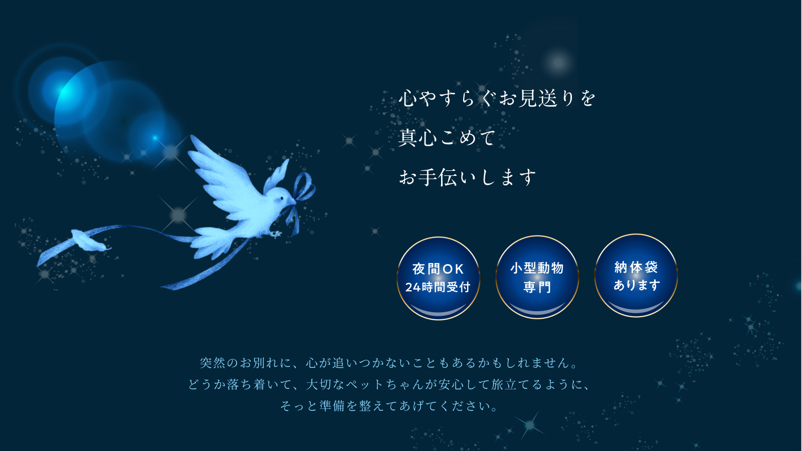 落ち着いて大切なペットちゃんの旅立ちの準備をえてあげてください。