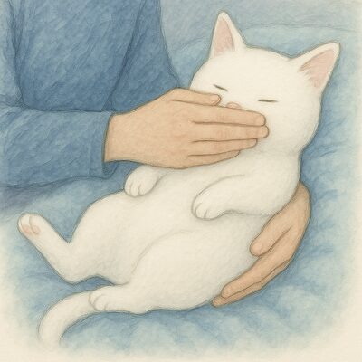 ペットシーツの上にやさしく寝かせ、タオルなどでそっと包んであげましょう。